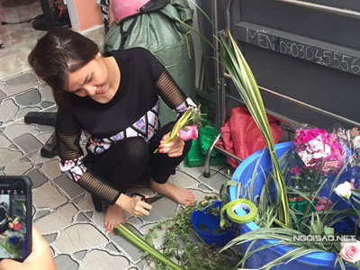 Người mẫu cùng các thành viên trong gia đình chung tay hoàn tất các khâu trang trí cho ngày vui của mình.