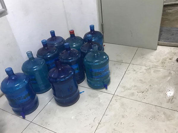 Bỗng dưng cắt nước mà không thông báo, Ban quản lý chung cư HUD3 Linh Đàm (Hoàng Mai, Hà Nội) khắc phục bằng cách cấp nước... cứu hoả bẩn, đục cho người dân dùng tạm.