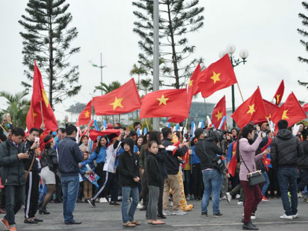 Cổ động viên đồng phục cờ Tổ quốc sang Trung Quốc cổ vũ U23 Việt Nam