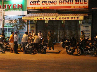 Đang làm việc tại một quán chè trên đường Nguyễn Huệ (TP Huế), chị D. đã bị chồng dùng dao cứa cổ gục tại chỗ.