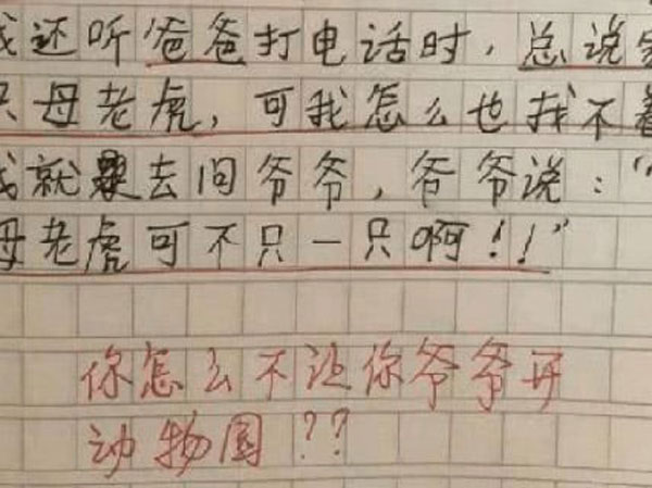 Học sinh tiểu học viết văn kể 'trong nhà có con hổ cái', cô giáo đọc xong chỉ biết ôm bụng cười