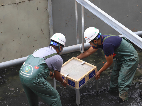 4 chiếc máy sục khí Nano và các tấm vật liệu thiên nhiên Bioreactor được các chuyên gia Nhật Bản đặt xuống sông Tô Lịch đã bước đầu cho thấy tín hiệu tích cực.