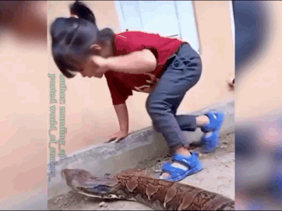 Clip: Bị trăn khổng lồ tiếp cận, bé gái có phản ứng không thể tin nổi