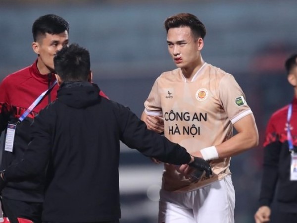 Ngôi sao của CLB Công an Hà Nội và đội tuyển Việt Nam, Bùi Hoàng Việt Anh dính chấn thương đáng sợ ở môi trong trận thua Thể Công Viettel và phải khâu 24 mũi.