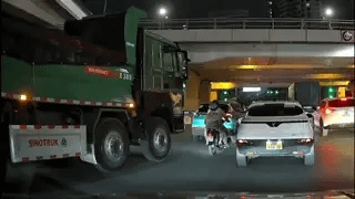 Xe máy suýt bị "nghiền nát" dưới gầm xe ben vì lọt điểm mù và cách xử lý liều lĩnh