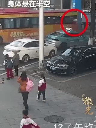 Một vụ việc thót tim vừa xảy ra tại tỉnh Hồ Nam, Trung Quốc, khi một bé gái bất ngờ rơi ra khỏi cửa sổ chiếc xe buýt đang di chuyển, rất may một "người hùng" đã xuất hiện kịp thời để ngăn chặn thảm kịch.