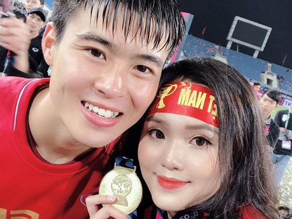 Trang 1Duy Mạnh, Huy Hùng ôm hôn và tặng huy chương vàng cho bạn gái