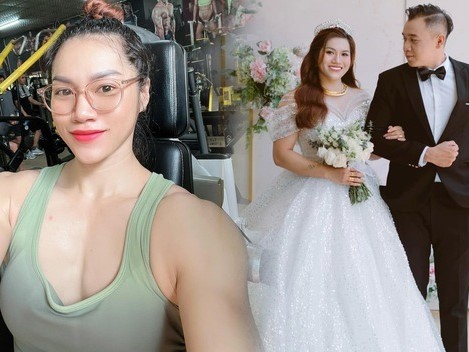 Tháng 4 vừa qua, búp bê cơ bắp đã lên xe hoa với ông xã là điển trai là nhân viên ngân hàng.