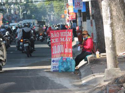 Trên đường phố Sài Gòn hiện đang tràn lan các "đại lý bảo hiểm xe máy" với giá "siêu rẻ" chỉ 10 ngàn đồng.