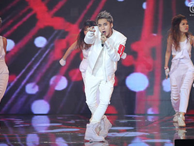 Cơn sốt vẫn chưa dứt, gương mặt cũng chưa đủ tươi tỉnh nhưng ca sĩ điển trai vẫn nhiệt tình biểu diễn trong đêm trao giải Cánh diều vàng.