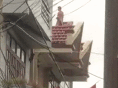 Nam thanh niên ngáo đá tưởng bị truy sát, leo lên trần nhà cố thủ