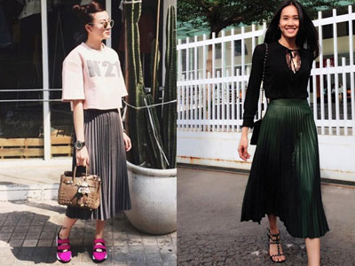 Trang 1Cách mặc váy xếp ly mùa thu đông của sao Việt và Hollywood