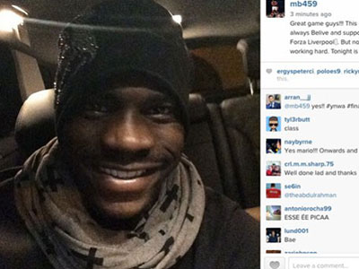 Balotelli phấn khích khi có pha lập công đầu tiên trong màu áo Liverpool ở Ngoại hạng Anh. Tiền đạo người Italy khoe ảnh cười hạnh phúc trên Instagram.