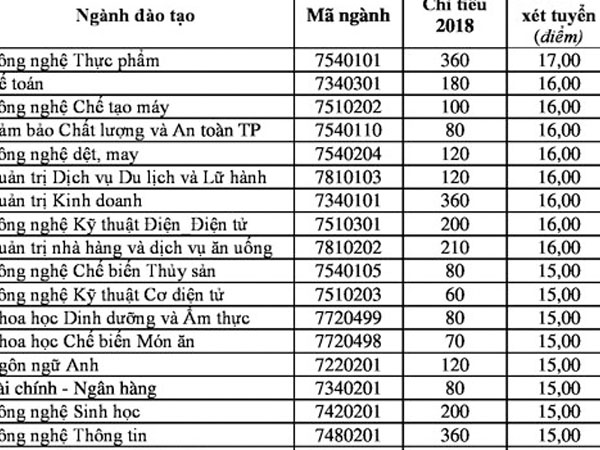 Chỉ tiêu một số ngành đào tạo được Đại học Công nghiệp Thực phẩm TP HCM điều chỉnh tăng với ngưỡng điểm xét tuyển 15-17.