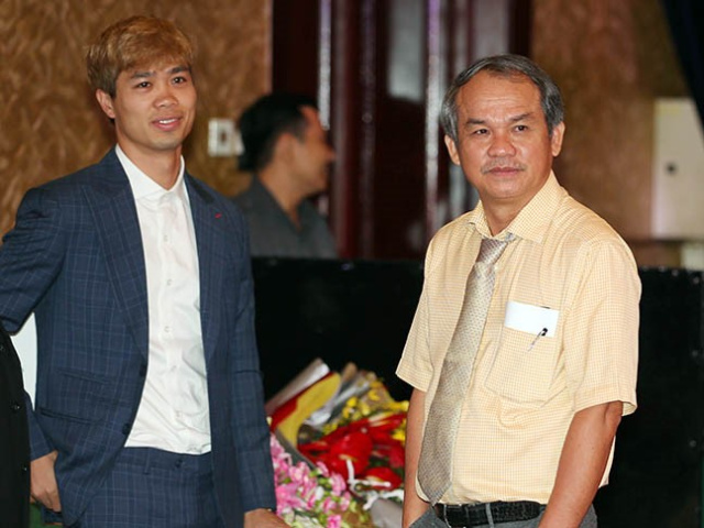 Trong buổi lễ đính hôn của Công Phượng với bạn gái Tô Ngọc Viên Minh, bầu Đức đã có mặt bên cạnh người thầy dạy đá bóng đầu tiên của Công Phượng.