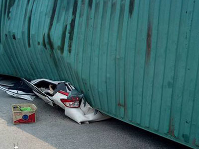 container đè bẹp ô tô