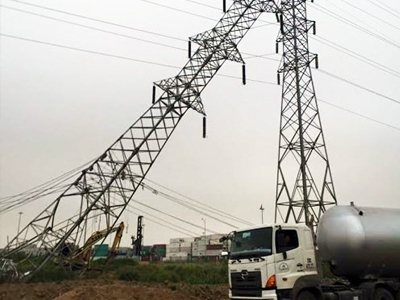 Sáng ngày 22-4, một cột điện 500kV cấp điện từ các nhà máy điện khu vực Quảng Ninh lên lưới điện quốc gia đã bị gãy do gió lốc.