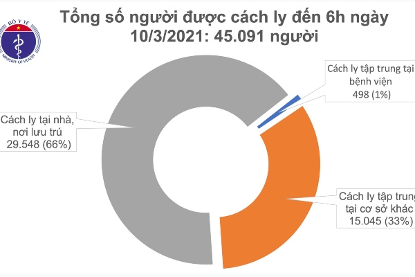 Bản tin về tình hình dịch COVID-19 do Bộ Y tế phát đi sáng 10/3 cho biết, 12 giờ qua, Việt Nam không ghi nhận thêm ca mắc mới,