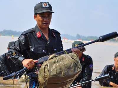 Cảnh sát cơ động bơi sông, bắn súng trong cuộc diễn tập
