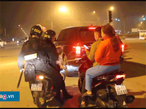 Thấy nam thanh niên đi xe máy không đội mũ bảo hiểm, 4 cảnh sát xuống đường ra hiệu dừng phương tiện.