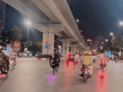 Trang 1Hai thanh niên lạng lách, bốc đầu xe máy trước mô tô CSGT ở Hà Nội
