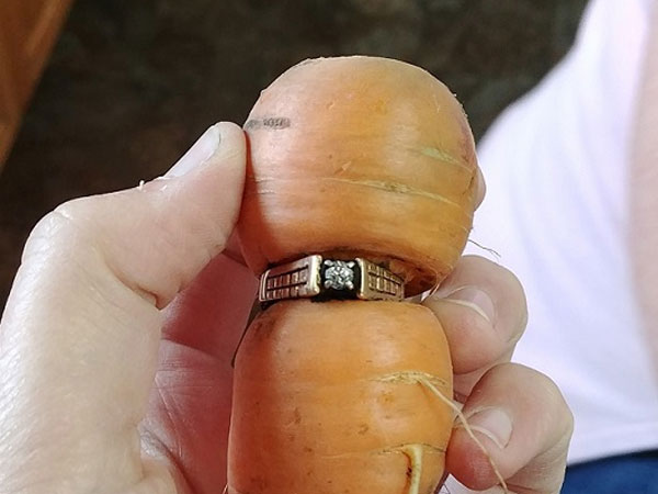 Đào trúng củ cà rốt mọc xuyên qua… nhẫn cưới của chính mình