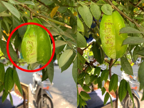 Hai quả khế được khắc chữ phía trên, đọc rõ nội dung ai cũng đều phải bật cười