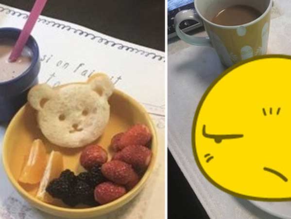 Dùng cùng một nguyên liệu để làm nhưng mẹ trẻ vừa bưng bữa sáng lên đã khiến con hớn hở còn bố hậm hực