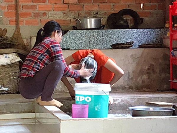 Tấm hình nàng dâu này được mẹ chồng tận tay gội đầu, sấy tóc cho khiến nhiều người ghen tị.