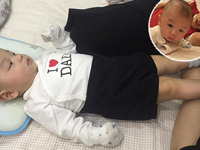 Kỳ Hân tiết lộ quý tử hơn 4 tháng tuổi có thể tự lật được nhưng chưa thành thạo.