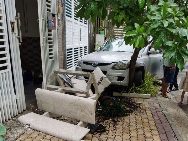 Vào rạng sáng nay (21/6) một ôtô 4 chỗ sau khi va chạm với xe máy đã lao vào khuôn viên trung tâm hành chính TP Đà Nẵng, hất văng những hòn đá lớn tung cửa kính.