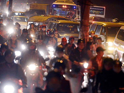 Chiều mùng 6 Tết, 3 xe khách gặp sự cố trên cao tốc Pháp Vân, khiến tuyến đường ùn tắc hơn 10 km. Tại quốc lộ 1A cũ, hàng nghìn người đi xe máy ùn ùn tiến vào thành phố trong đêm.