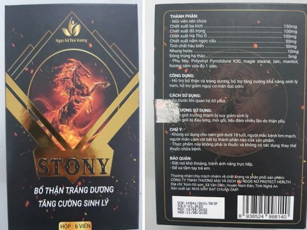 Chất cấm Sildenafil và Sibutramine vừa được phát hiện trong ba sản phẩm Bổ hoàn dương plus; Stony bổ thận tráng dương tăng cường sinh lý và Giấm táo slim hỗ trợ giảm béo.