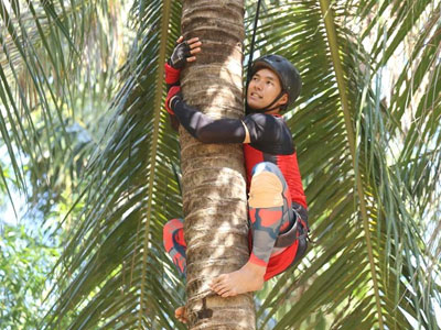Nhiệm vụ trèo dừa khiến các tay đua nam như Lincoln, Criss, Minh Long mất rất nhiều sức lực.
