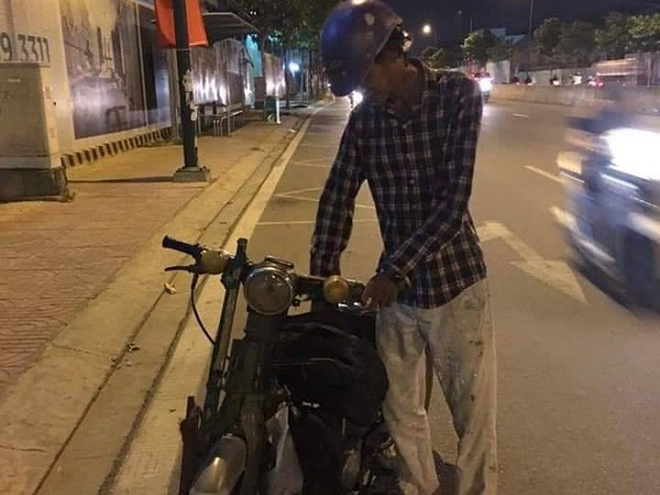 Ông bố nghèo dắt chiếc xe cà tàng vừa đi vừa khóc và hành động bất ngờ của cô gái lạ khiến nghìn người thả tim