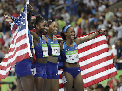 Cán đích đầu tiên với thời gian 37 giây 27, Usain Bolt cùng đội tuyển điền kinh Jamaica giành HCV nội dung chạy tiếp sức 4x100m. Đây cũng là tấm HCV thứ 9 của "tia chớp đen" ở các kỳ Thế vận hội.