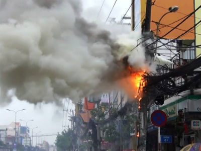 Khoảng 8h sáng 7/6, một trụ điện tại địa chỉ 289 Tô Hiến Thành (phường 13, quận 10, TPHCM) đã bất ngờ bốc cháy dữ dội rồi lan vào bảng hiệu của một cửa hàng mạng viễn thông và một khách sạn khiến người dân hốt hoảng tháo chạy.