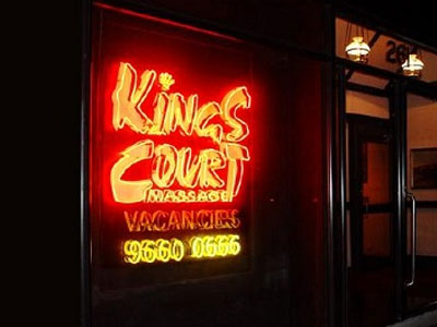 Trung tâm massage cho người lớn Kings Court nằm trong một con hẻm kín đáo ở ngoại ô Sydney, cung cấp đủ loại hình từ xoa bóp đơn thuần đến "dịch vụ tới bến".