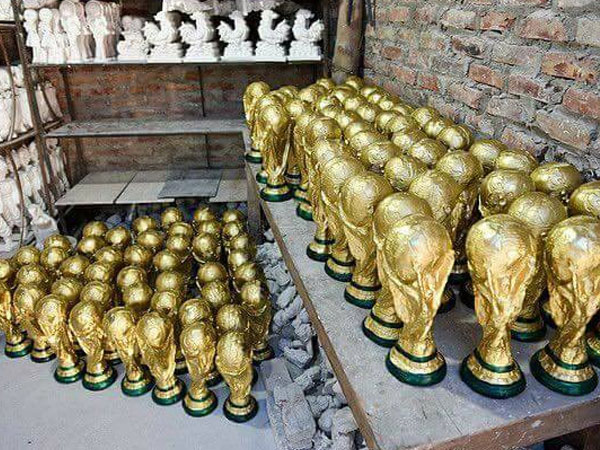 Những ngày giải World Cup sắp khai mạc, những chiếc cup vàng làm bằng thạch cao được bày bán khắp nơi tại làng gốm Bát Tràng (Hà Nội). Nhiều khách từ các tỉnh lặn lội về mua.
