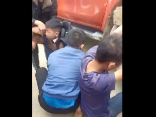 Trong khi những người đi đường khác chỉ lạnh lùng đi qua hoặc đứng ngoài bàn tán, thì một thanh niên đi chiếc xe ben vội vã lao tới và giải cứu nạn nhân khỏi tình huống nguy hiểm.