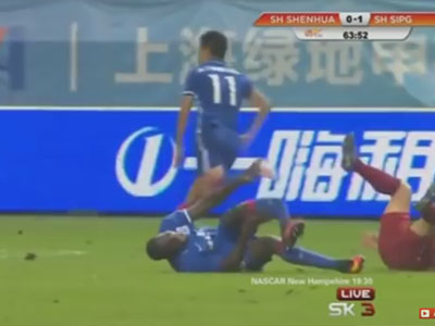 Chân của tiền đạo Demba Ba đã gãy gập sau một pha va chạm mạnh ở trận derby Thượng Hải giữa Shanghai Shenhua và Shanghai SIPG.