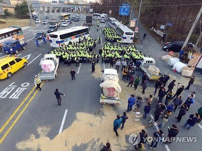 Nông dân Hàn Quốc bị cấm lái máy cày biểu tình chống tổng thống