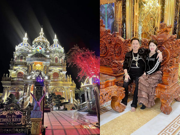 Toà lâu đài bề thế của anh Nguyễn Vĩnh Thoan dù chưa hoàn thiện 100% nhưng đã mở cửa cho khách địa phương và các tỉnh lân cận đến tham quan. Nhiều người thích thú khi chụp hình tại biệt thự dát vàng hoành tráng này.