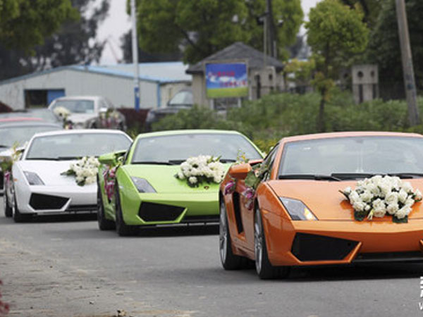 Một đội gồm hơn 30 chiếc xe sang xuất hiện trên đường trong một đám cưới đình đám ở thành phố Tế Nam, tỉnh Sơn Đông, Trung Quốc.