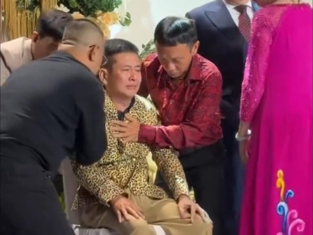 Nghệ sĩ Tấn Beo ngồi xe lăn, bật khóc nức nở trong ngày cưới con trai