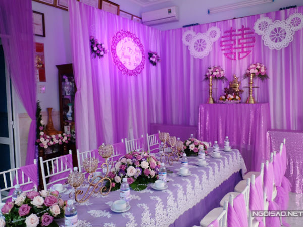Ngôi nhà của nữ diễn viên đã trang hoàng lộng lẫy, sẵn sàng cho lễ cưới của cô với ca sĩ Trung Kiên.