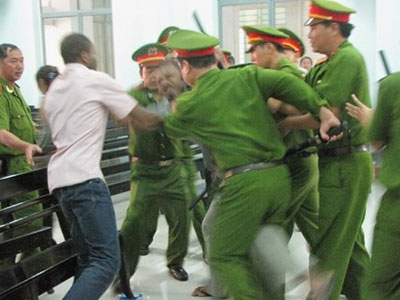 Bị hoãn xử, 2 ông Tây "quậy" tưng bừng tòa án