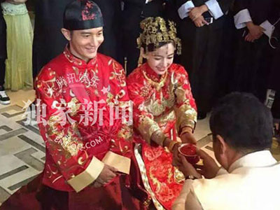 Sáng 8/10, Huỳnh Hiểu Minh - Angelababy tổ chức lễ cưới truyền thống cùng gia đình và một số bạn bè thân thiết.