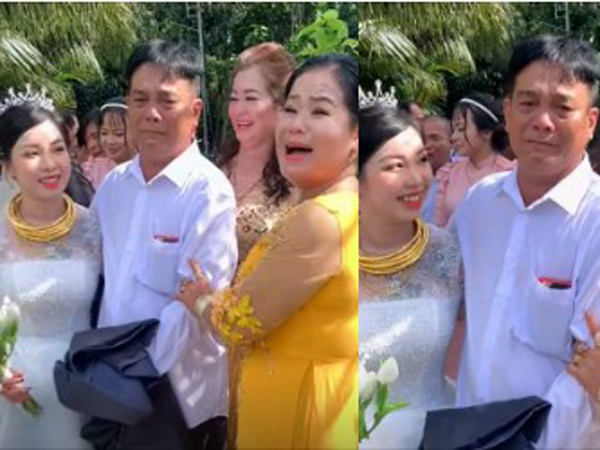 Trong khi mọi người xung quanh tươi cười thì bố cô dâu gây sự chú ý vì gương mặt mếu máo, chỉ trực trào rơi nước mắt.