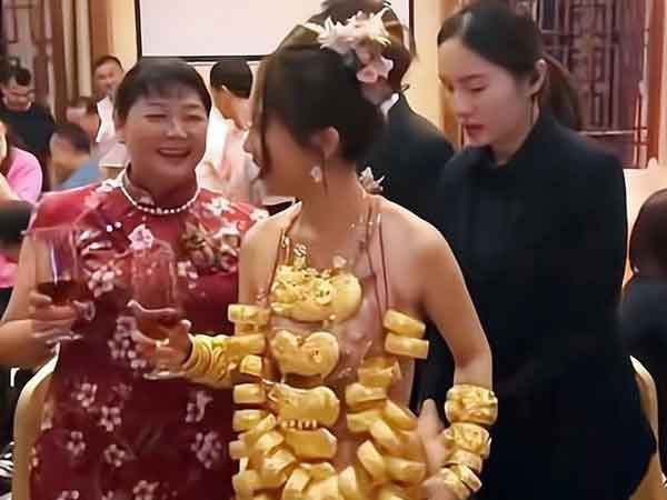 Trang 1Cô dâu đeo 42 cây vàng đi tiếp đãi quan khách, nhưng cư dân mạng chỉ để ý đến bộ váy 'mặc cũng như không'